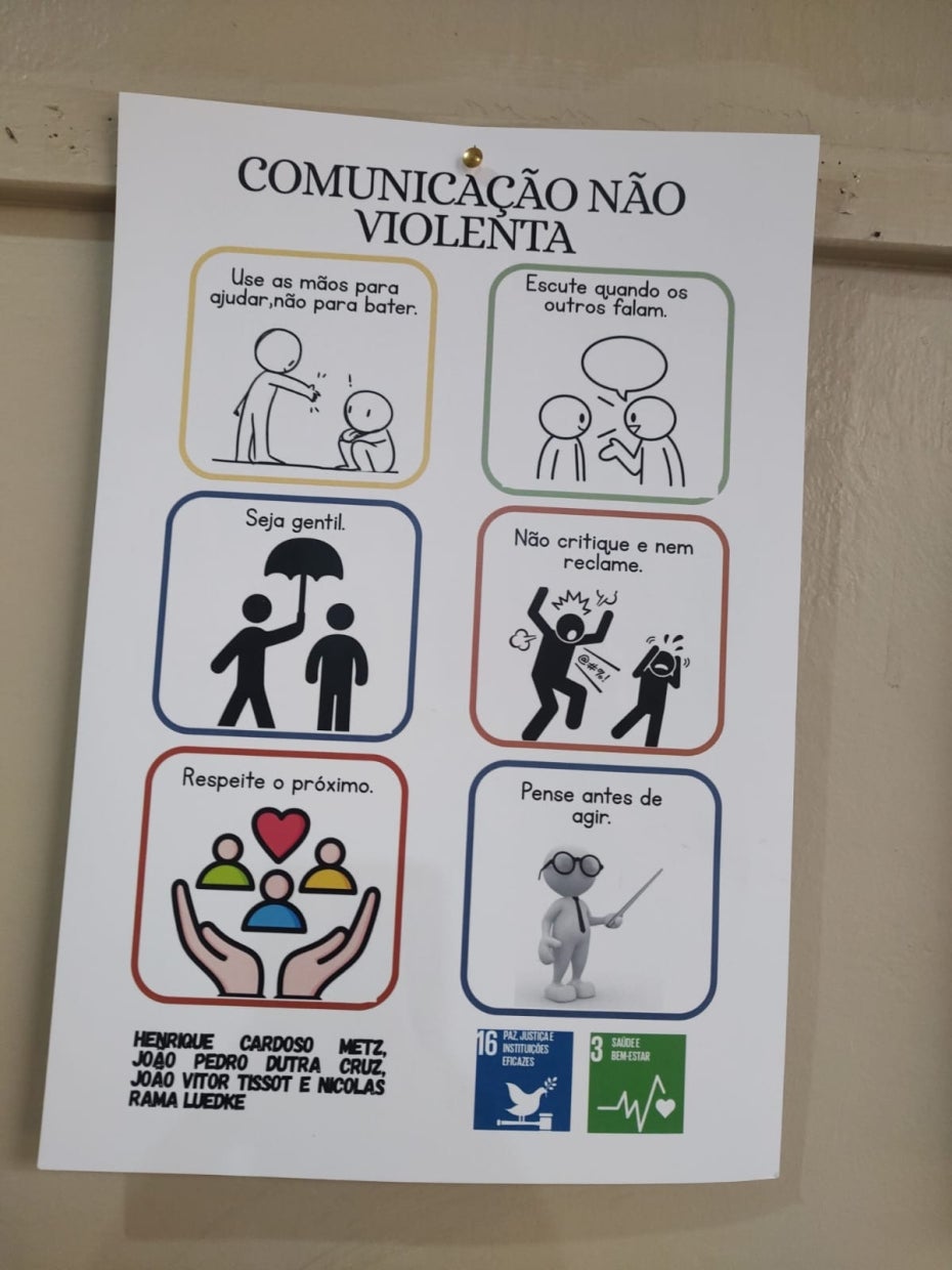 Desde 2023, a Comunicação Não Violenta integra a disciplina de Projeto de Vida no Bom Pastor e, neste ano, foi ampliada com conexão à Agenda 2030, promovendo empatia, diálogo e resolução pacífica de conflitos entre os estudantes.