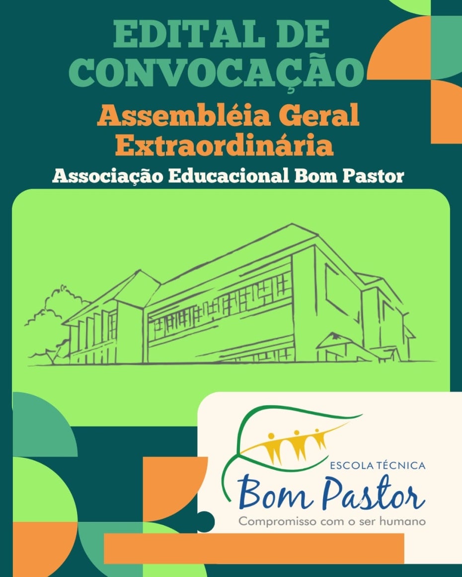 O Presidente da ASSOCIAÇÃO EDUCACIONAL BOM PASTOR (doravante denominada “Associação”), no uso de suas atribuições estatutárias e nos termos do art. 21 do Estatuto Social da Associação, convoca os associados votantes para a ASSEMBLEIA GERAL EXTRAORDINÁRIA, a realizar-se na sede da Associação, situada na Linha Brasil, nº 1527, no Município de Nova Petrópolis, no Estado do Rio Grande do Sul, CEP 95.150-000, no dia 23 de fevereiro de 2026, às 18 horas e 30 minutos em primeira convocação, com a presença da maioria absoluta dos associados votantes, ou às 19 horas e 30 minutos em segunda convocação com qualquer número de associados presentes, a fim de deliberarem sobre a seguinte ORDEM DO DIA: